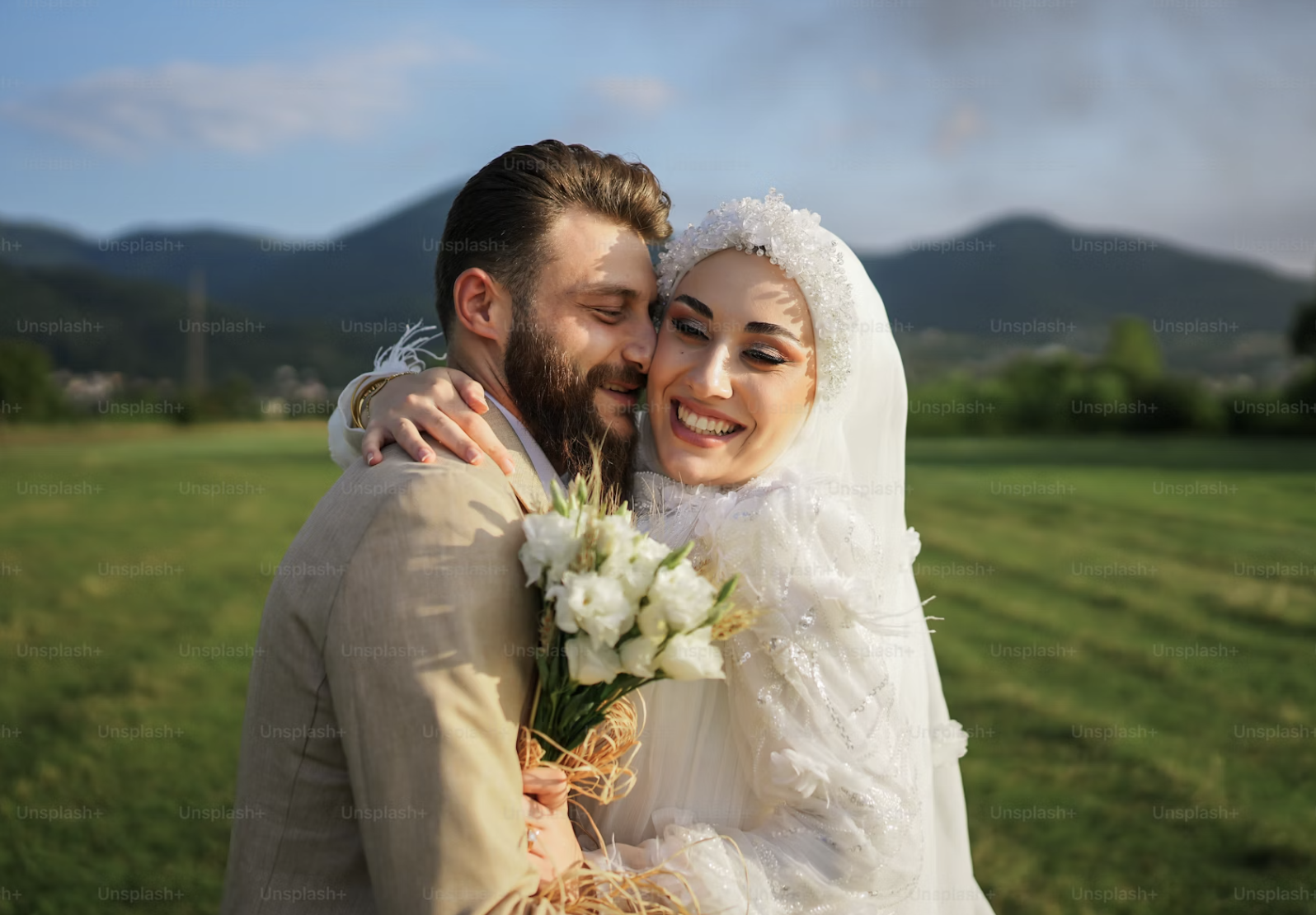 美しい自然風景での洋装前撮り